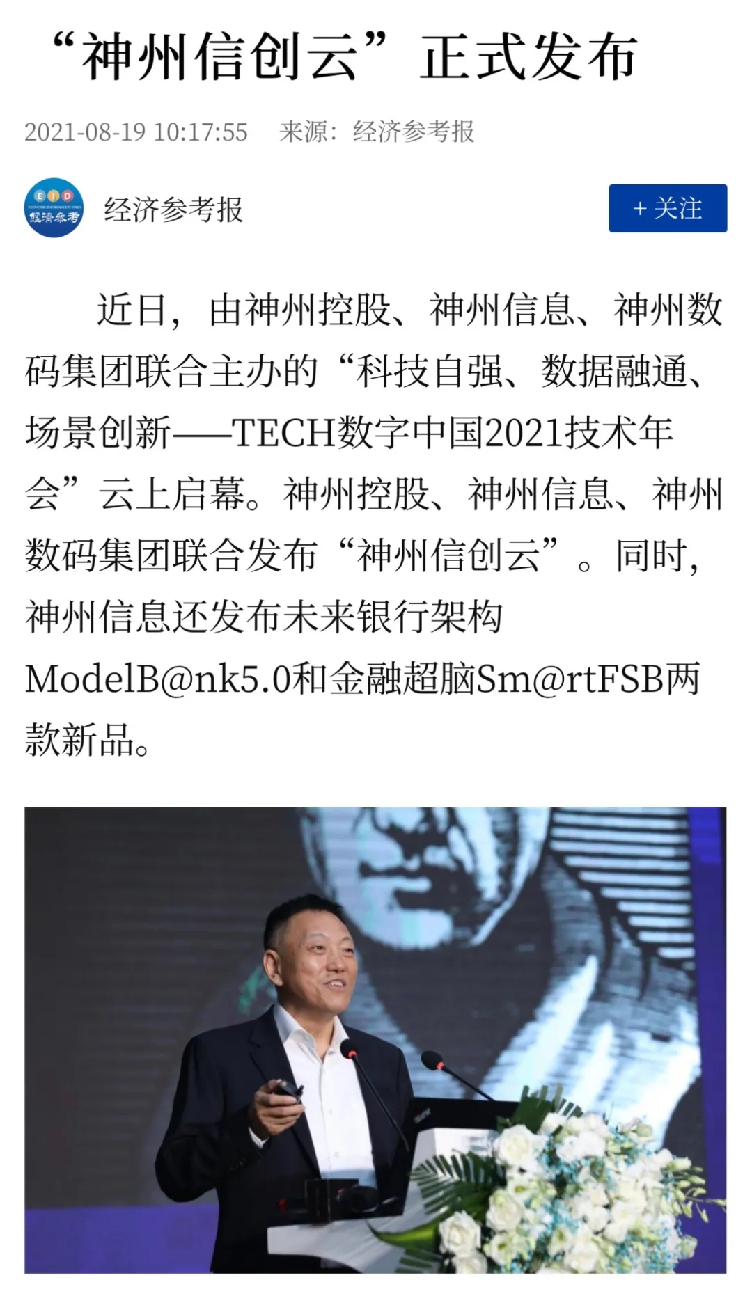 神州信息发布银行架构ModelB@nk5.0、金融超脑Sm@rtFSB